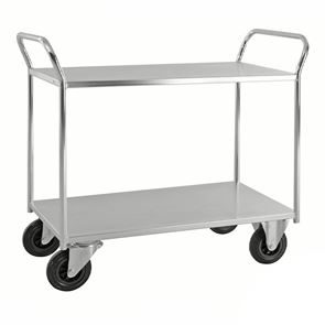 Vagnen är utrustad med 2 st. fasta och 2 st. svängbara hjul. Kan belastas med totalt 400 kg.
