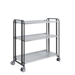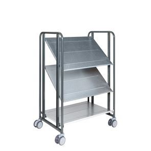 Hyllvagn Fangan. En flexibel vagn med justerbara och vinklingsbara hyllplan. Hyllplanen är vändbara och kommer med en raskant. Hyllplanen kan även monteras med raskanten upp eller ner för att passa rådande omständigheter. Pulverlackerat stativ och hyllplan. Hyllvagnen har fyra lättrullade hjul, två länkhjul och två bromsade hjul.