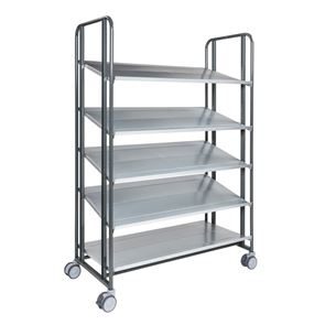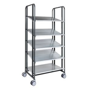 Finns i olika storlekar, med 3 eller 5 hyllplan. Pulverlackerat robust stålstativ med hyllplan i aluminiumzink.