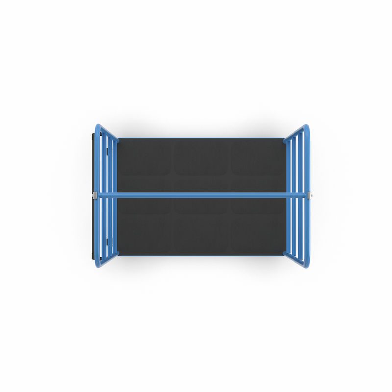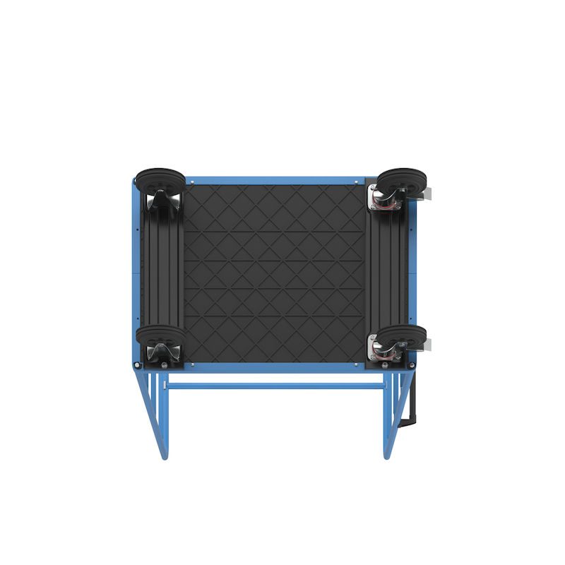 Hyllvagn Ilotar, 2 gavlar, lastyta 1175 x 800 mm, massivgummi. Stabil svetskonstruktion, pulverlackerad i ljusblått RAL 5012 och flexibel att använda.