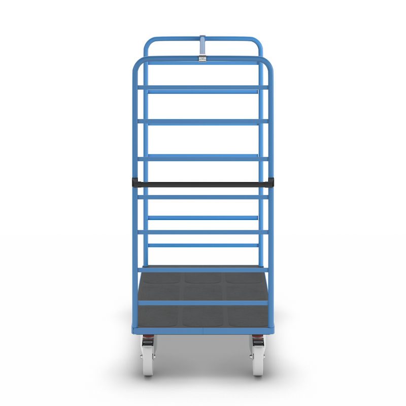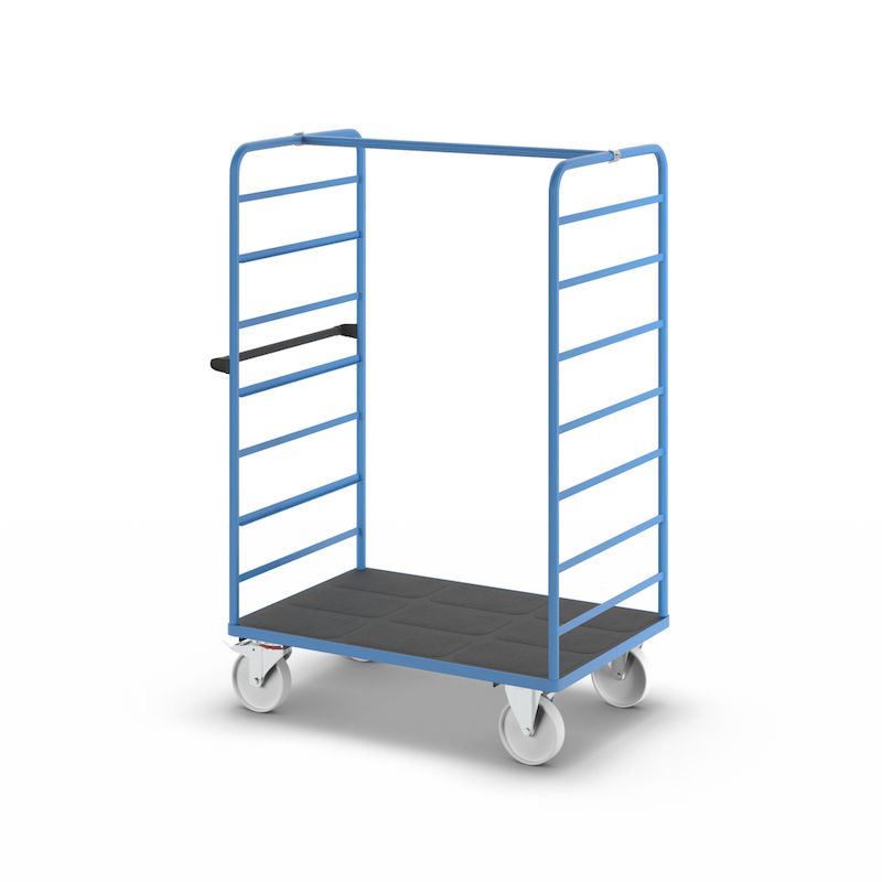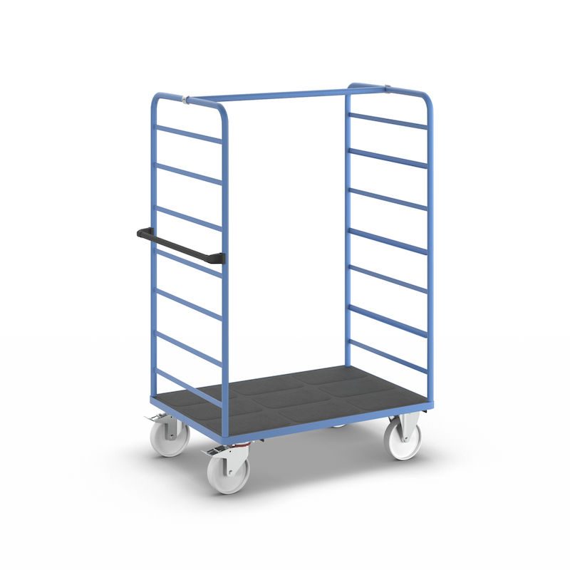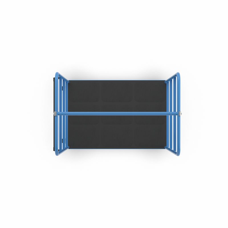 Hyllvagn Ilotar, 2 gavlar, lastyta 1175 x 800 mm, polyamid. Stabil svetskonstruktion, pulverlackerad i ljusblått RAL 5012 och flexibel att använda.