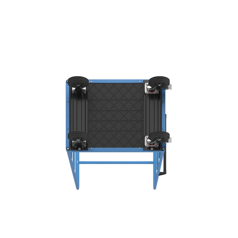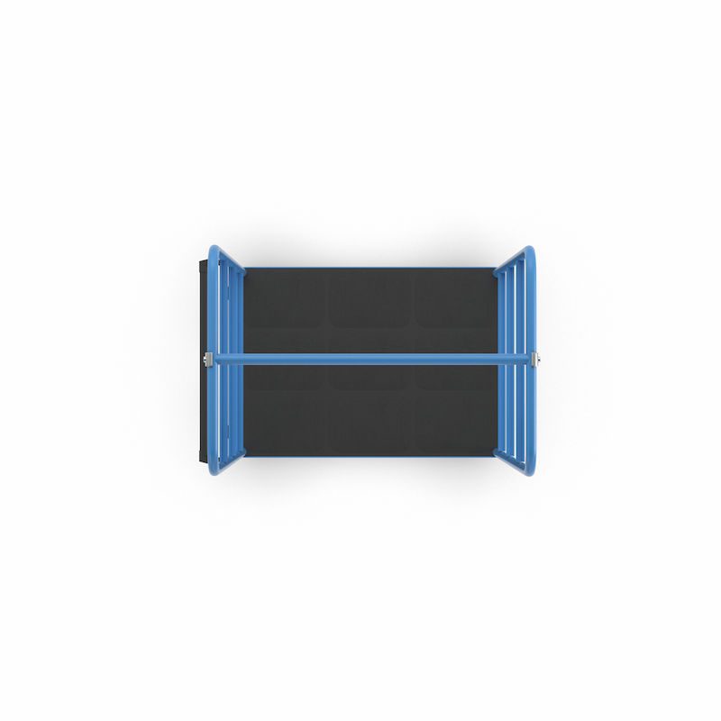 Hyllvagn Ilotar, 2 gavlar, lastyta 975 x 700 mm, massivgummi. Stabil svetskonstruktion, pulverlackerad i ljusblått RAL 5012 och flexibel att använda.