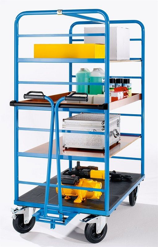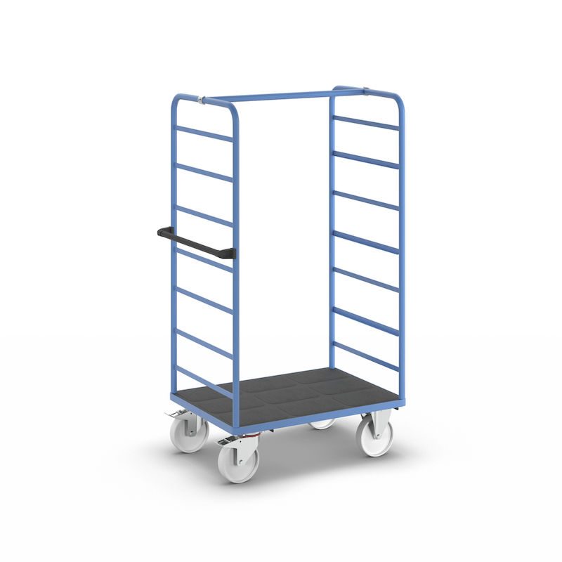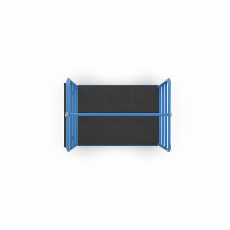 Hyllvagn Ilotar, 2 gavlar, lastyta 975 x 700 mm, polyamid. Stabil svetskonstruktion, pulverlackerad i ljusblått RAL 5012 och flexibel att använda.