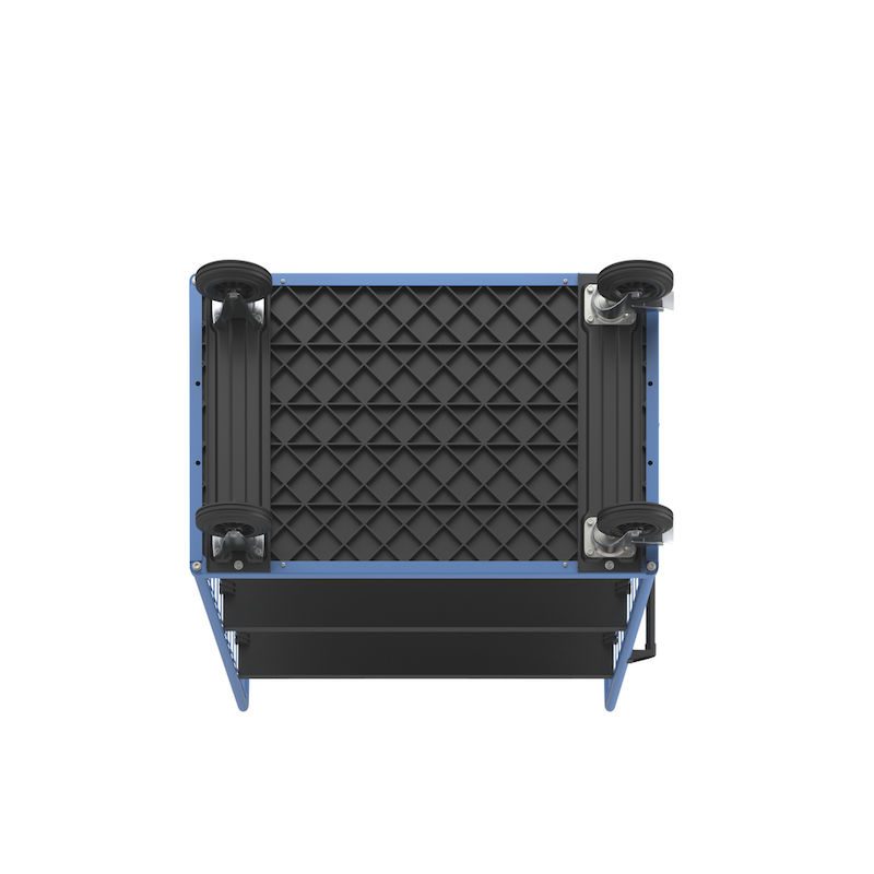 - Hjul: 2 bromsade länkhjul, 2 fasta hjul