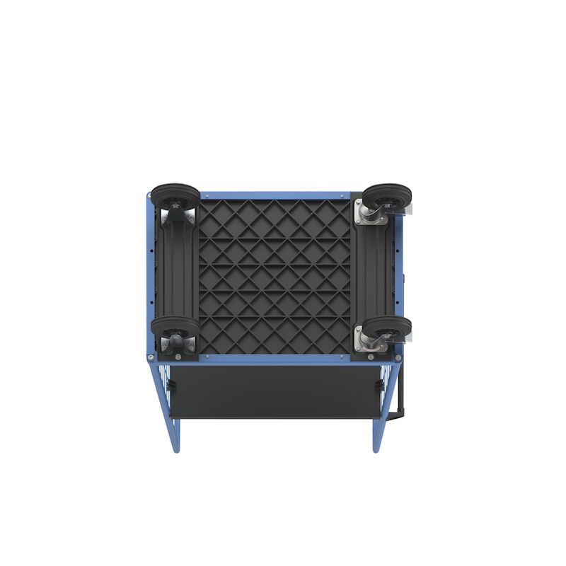- Hjul: 2 bromsade länkhjul, 2 fasta hjul