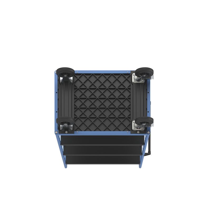 - Hjul: 2 bromsade länkhjul, 2 fasta hjul