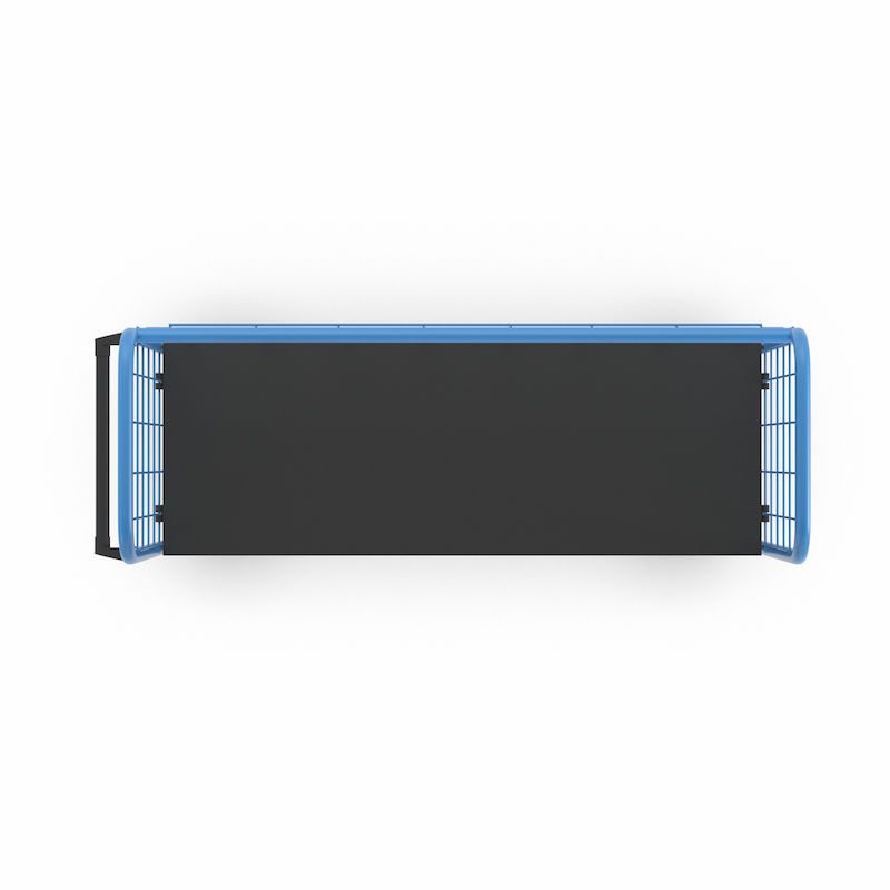 Postbur 500 kg Noor, med gallerväggar, på 3 sidor, längd 1420 mm, inkl. 1 hyllplan. Pulverlackerad, standardutförande i ljusblått RAL 5012. För lastsäkring med galler på tre sidor. Maskstorlek: bakvägg 150 x 300 mm, kortsidor 100 x 100 mm. Bottenplatta av återvunnen plast.