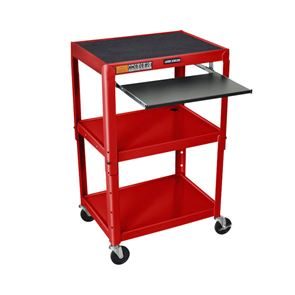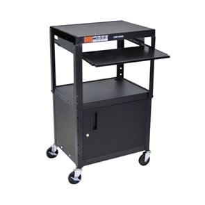 Strukturerade halkskyddsmattor och en omgivande upphöjd kant (0,6 cm hög) håller föremål säkert på plats. Det låsbara underskåpet ger extra förvaringsutrymme för viktiga arbetsmaterial eller känslig utrustning och skyddar mot obehörig åtkomst. Den utdragbara hyllan är idealisk för t.ex. bärbara datorer, tangentbord eller dokument som enkelt kan förvaras utrymmeseffektivt när de inte används. Integrerade kabelgenomföringar möjliggör ordnad och säker kabeldragning vid användning av elektroniska enheter.