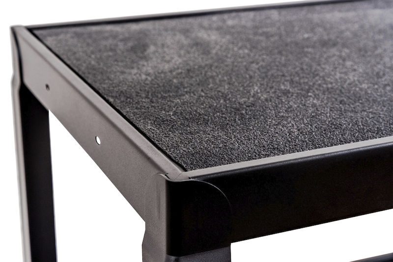 Strukturerade halkskyddsmattor och en omgivande upphöjd kant (0,6 cm hög) håller föremål säkert på plats. Det låsbara underskåpet ger extra förvaringsutrymme för viktiga arbetsmaterial eller känslig utrustning och skyddar mot obehörig åtkomst. Den utdragbara hyllan är idealisk för t.ex. bärbara datorer, tangentbord eller dokument som enkelt kan förvaras utrymmeseffektivt när de inte används. Integrerade kabelgenomföringar möjliggör ordnad och säker kabeldragning vid användning av elektroniska enheter.