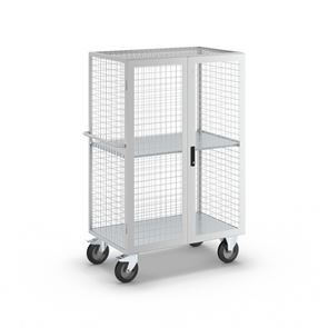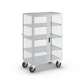 Hyllvagn Abbe. Idealisk för mellanlagring och transport! ESD-utförande med pulverlackering i ljusgrått RAL 7035 för högt skydd mot statisk elektricitet. Bottenplatta av galvaniserat stålplåt.