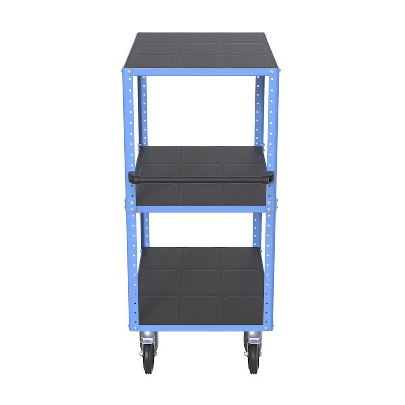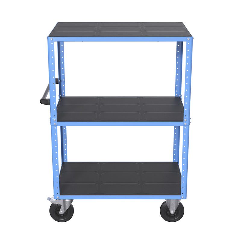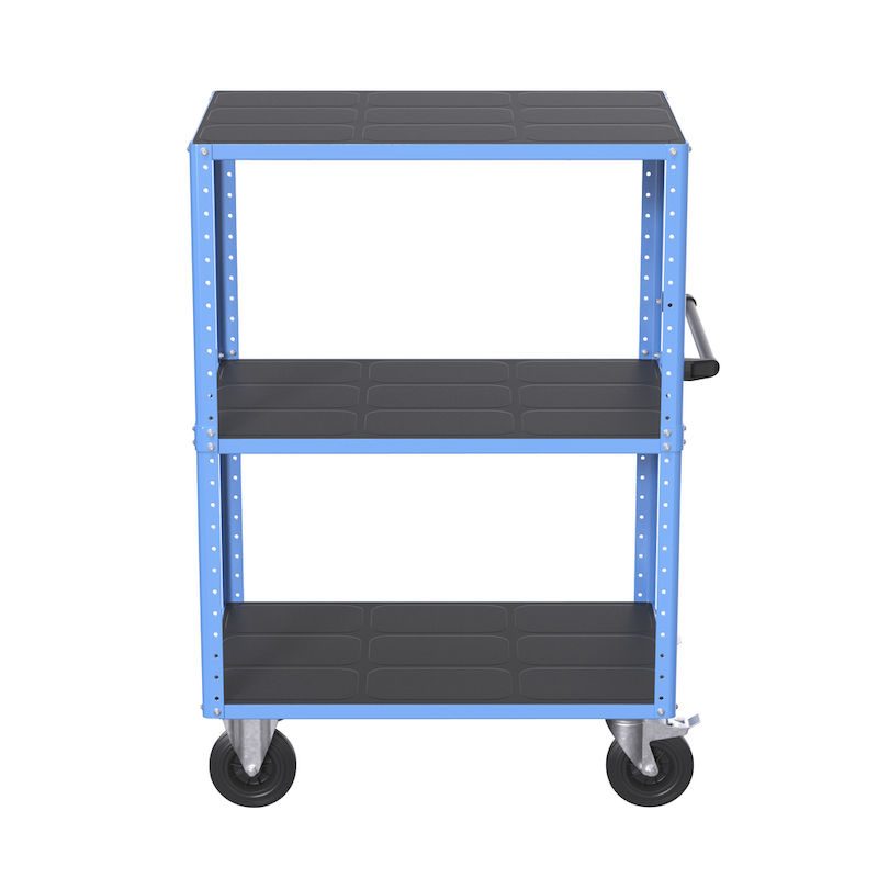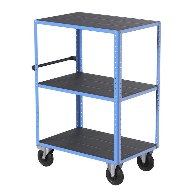 BeskrivningHyllvagn CustomLine, 3 hyllplan, ljusblå RAL 5012, massivgummi