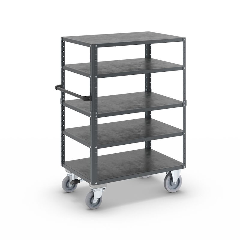 BeskrivningHyllvagn CustomLine, 5 hyllor, med centralbroms, antracitgrå RAL 7016