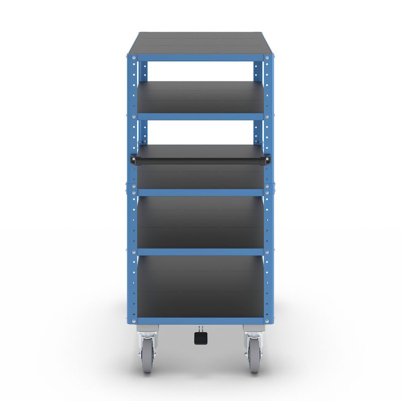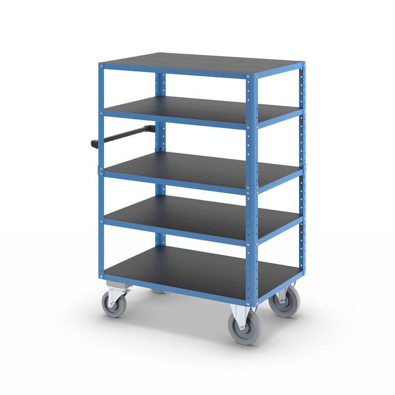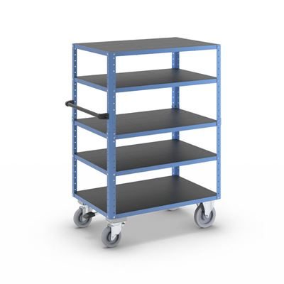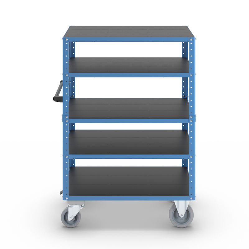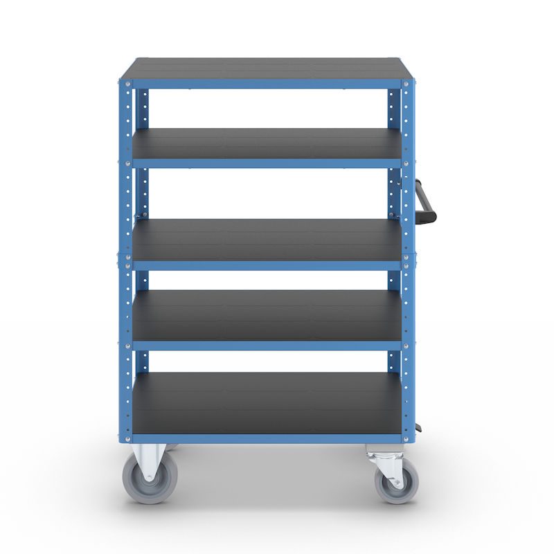 BeskrivningHyllvagn CustomLine, 5 hyllor, med centralbroms, ljusblå RAL 5012