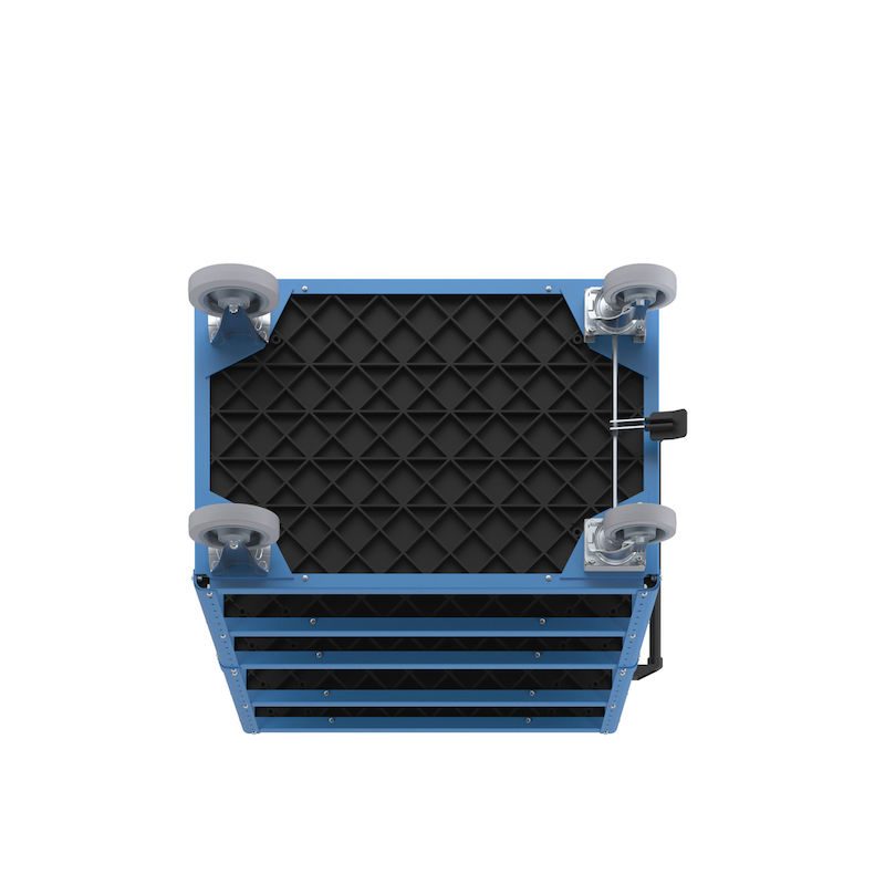 Det flexibla CustomLine-systemet är mycket användningsbart och lätt att anpassa efter arbetsflödet på ditt företag. Se till att du är förberedd och kan agera snabbt när processer och uppdrag ändras. Vagnen kan anpassas och utrustas med olika tillbehör för att passa olika komponentstorlekar, användningsområden, arbetsplatser och personalbehov. För optimal körkomfort finns tre hjulalternativ: massiva gummihjul, elastiska hjul eller elastiska hjul med centralbroms. Den ljusblå och antracitgrå designen ger ett stilrent och professionellt intryck.