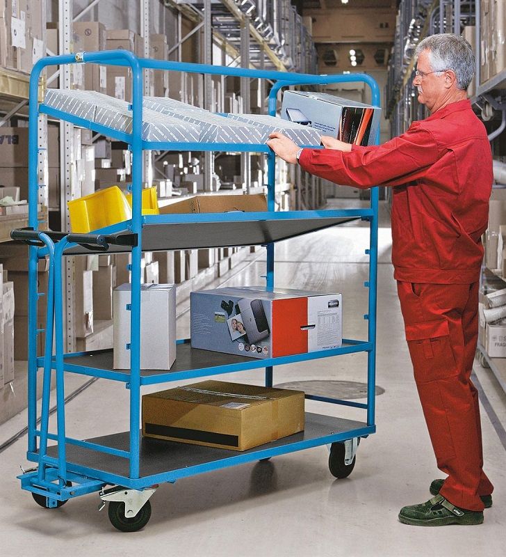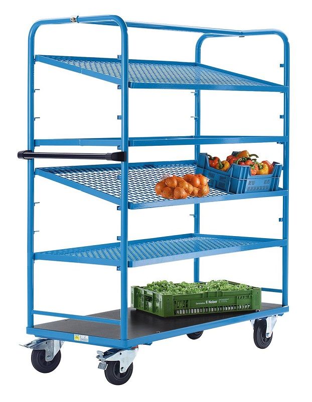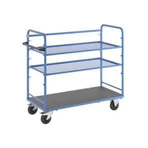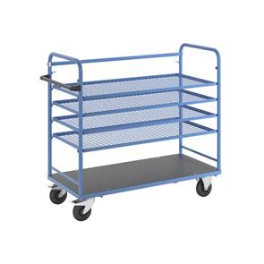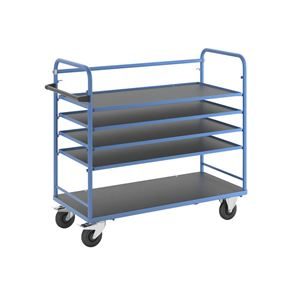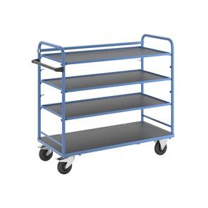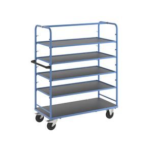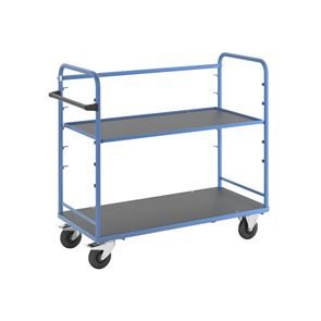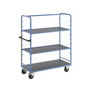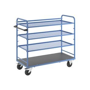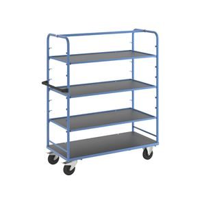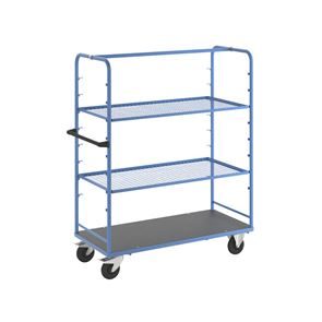 Hyllvagn Grotte. Högkvalitativ pulverlackering i ljusblått RAL 5012. Botten av dekorbelagd MDF-skiva.