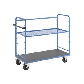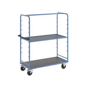 2 länkhjul och 2 fasta hjul, Ø 160 mm. Massivgummihjul. Länkhjul med broms.