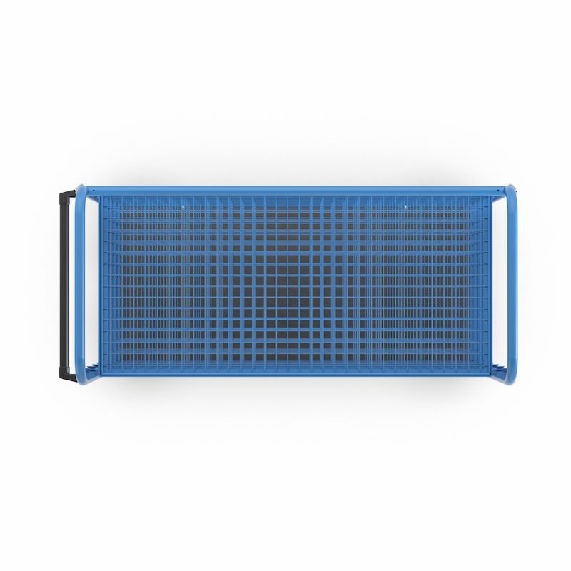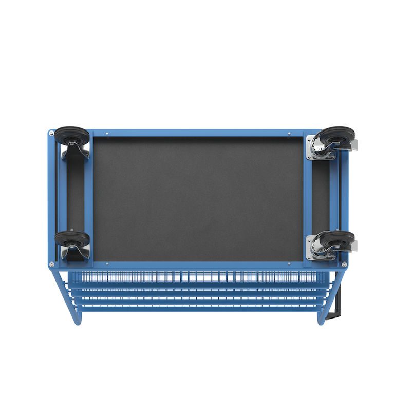 Hyllvagn Grotte, för 5 hyllplan, inkl. 4 hyllplan, med gallerhyllor. Högkvalitativ pulverlackering i ljusblått RAL 5012. Botten av dekorbelagd MDF-skiva.