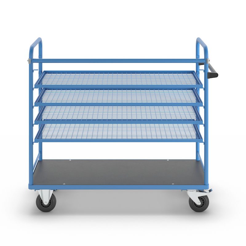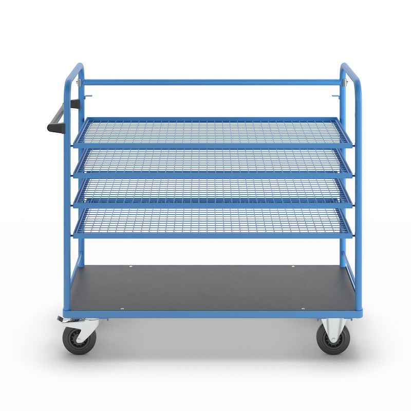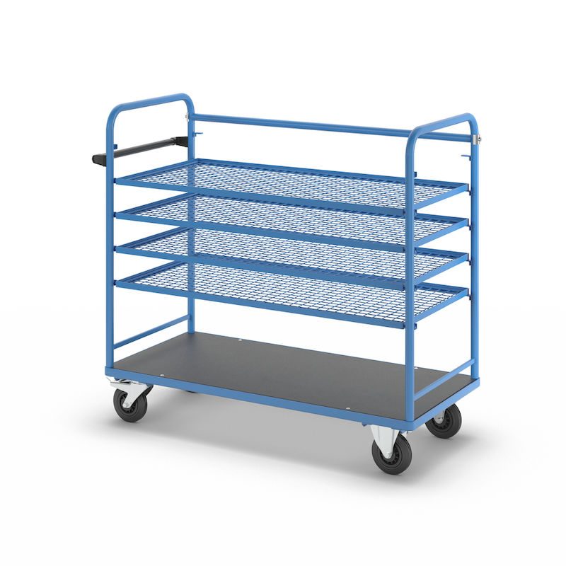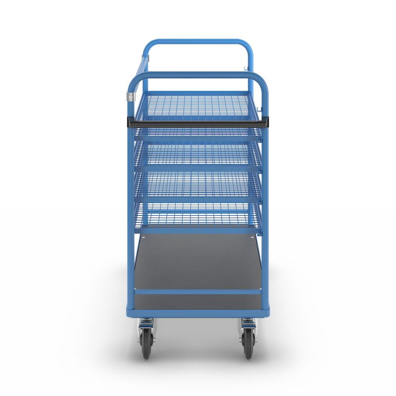 BeskrivningHyllvagn Grotte, för 5 hyllplan, inkl. 4 hyllplan, med gallerhyllor