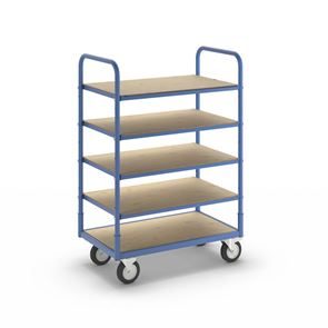 Hyllvagn Vilgot. Hyllvagnen Flex erbjuder en perfekt balans mellan pris och funktionalitet för intern materialhantering. Den robusta stålkonstruktionen i pulverlack, som är skruvad för extra stabilitet, ger en lastkapacitet på 300 kg och gör vagnen idealisk för daglig användning i verksamheter som behöver flytta lätt till medeltungt gods på ett effektivt sätt.