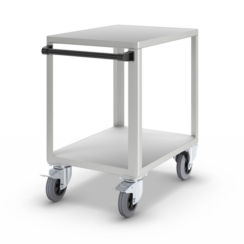 Rullvagn Adrian, lastyta LxB 750 x 550 mm, silver RAL 9006. Stålvinkelkonstruktion, pulverlackerad med hög kvalitet.