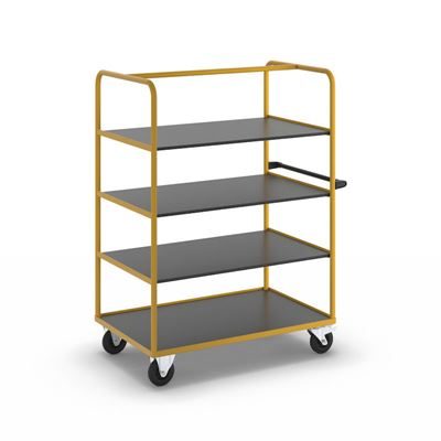 Rullvagn Kristoffer, 3 hyllplan, LxBxH 1350 x 800 x 1750 mm. Stabil svetskonstruktion. Pulverlackerad i gult RAL 1028.