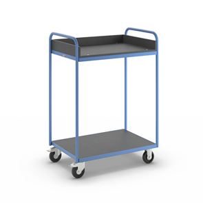 Rullvagn Lex. Stålrörsram pulverlackerad i ljusblått RAL 5012. Våningar av MDF-skivor, svart. Övre hylla med 85 mm uppvikt kant på tre sidor.