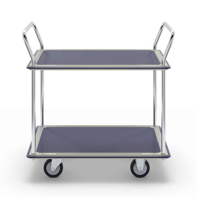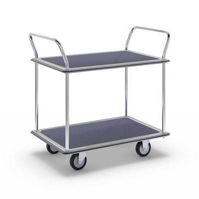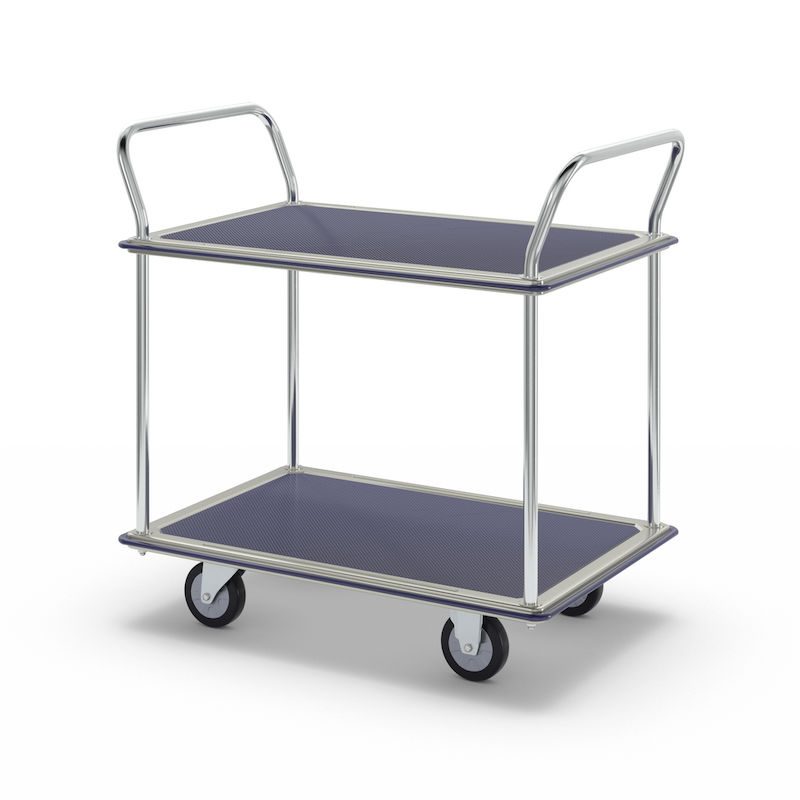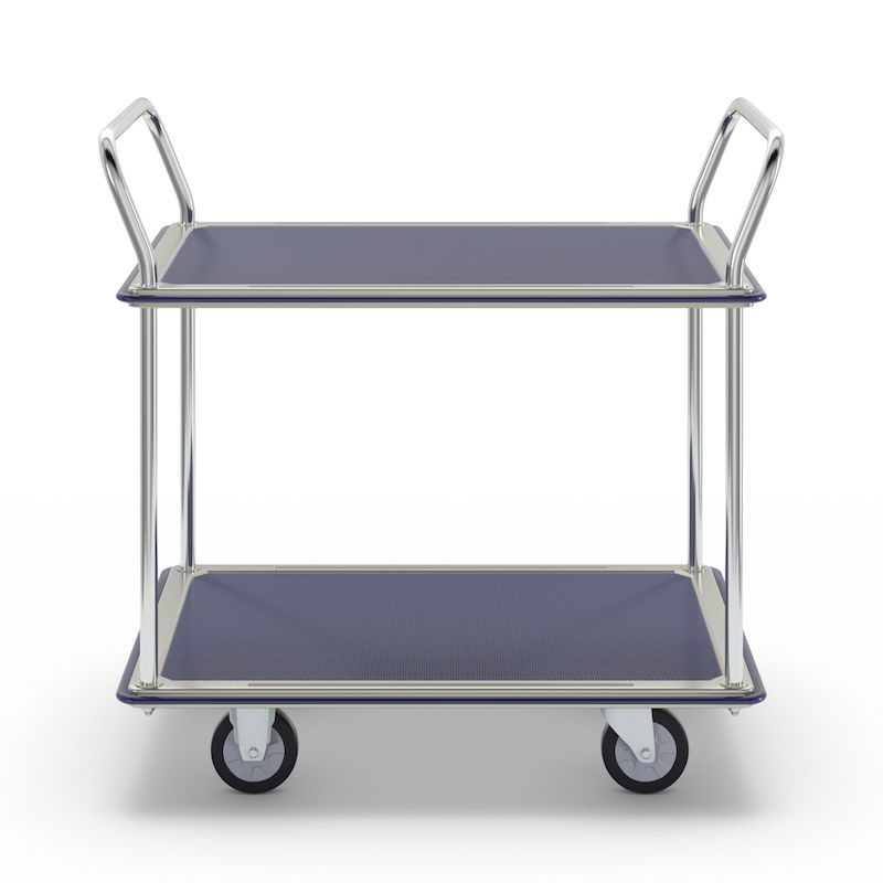 BeskrivningRullvagn Mateo, 2 hyllplan med glidskydd, 2 skjutbyglar, lastkapacitet 250 kg