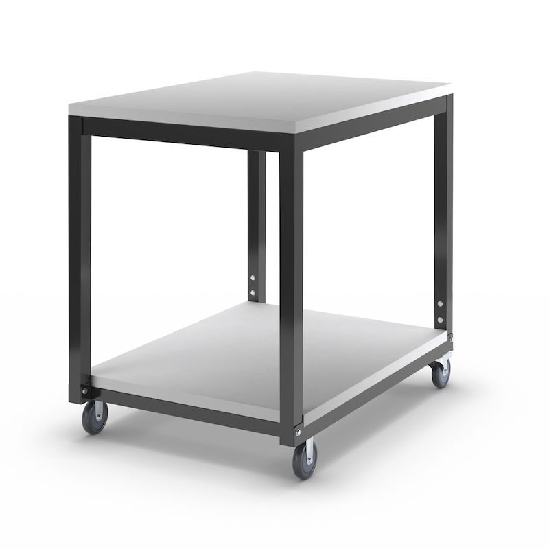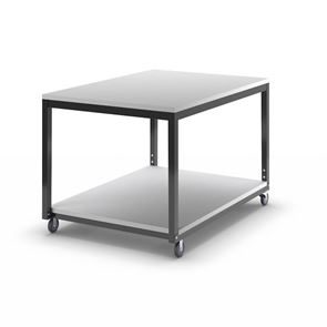 Rullvagn Saga. Praktisk sidovagn med 2 melaminbelagda hyllplan. 4 länkhjul, varav 2 med broms. Ställbar höjd från 650 till 900 mm.