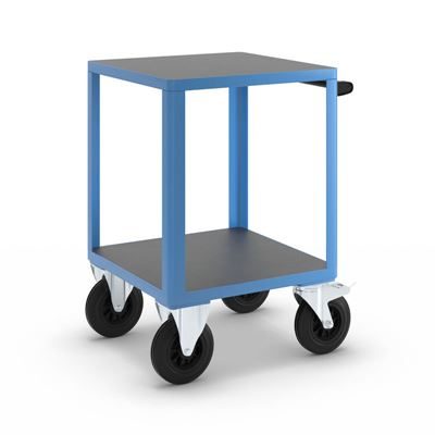 Rullvagn Tibor, 2 hyllplan LxB 600 x 600 mm, massivgummihjul. Stålkonstruktion, Pulverlackerad i ljusblått RAL 5012 i standardutförande.