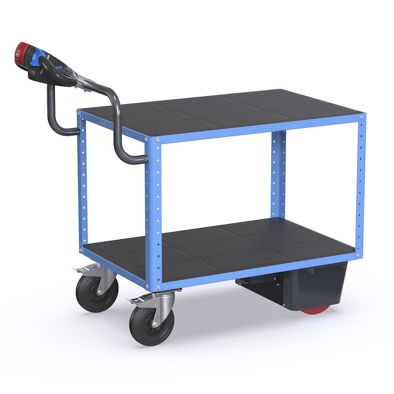 Den eldrivna rullvagnen är en idealisk lösning för individuella behov inom industri och produktion. Den innovativa produkten ingår i vår mångsidiga CustomLine-serie och står för flexibilitet och modulanpassning med många kombinationsmöjligheter och tillbehör. Den är designad för ergonomiska arbetsprocesser som främjar medarbetarnas hälsa och kan transportera laster upp till 500 kg snabbt och effektivt. Det ergonomiska handtaget på elmodulen är lättmanövrerat och kan anpassas efter användarnas längd. Rullvagnen är en tillförlitligt partner i det dagliga arbetet. Den anpassas flexibelt efter dina verksamhetsbehov och effektiviserar dina processer.