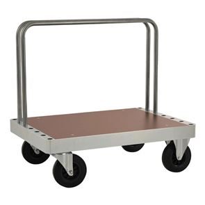 Skivvagn med byglar. En riktig klassiker för tuffa transporter med stabil konstruktion. Flak och hyllor av MDF direktlaminat för krävande miljöer, beständig mot kokande vatten och alkalier.
