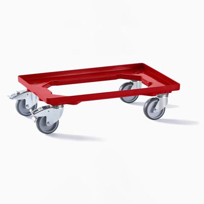 Backvagn av stryktålig ABS-plast med 4 st. länkhjul. Perfekt för alla eurobackar med måtten 600x400 mm eller två eurobackar med måtten 400x300 mm.