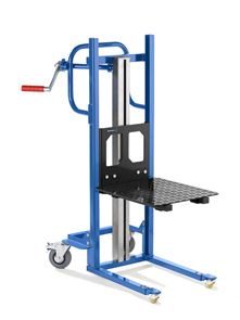 Manuell lättlyftare Ludvig. Materiallyft med olika lasthållare för olika behov. Lastens tyngdpunkt är 300 mm. Den lyfter material eller verktyg till idealisk arbetshöjd. Mobilt system med två bromsade länkhjul och två lasthjul, eller med 4 länkhjul. Lyftrörelse med självlåsande säkerhetsvinsch och precisionskedja.