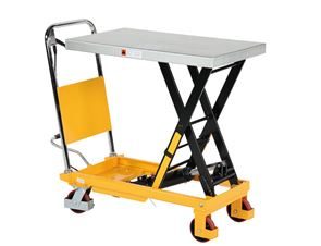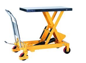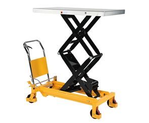 Hydrauliska lyftbordsvagnar höjs med fotpump och sänks med handtagsreglage. Snabblyftfunktion vilket innebär snabbare lyft vid lägre belastning. Slitstark elförzinkad bordsyta. Två svängbara och två fast hjul, samtliga med fotskydd.