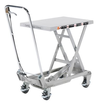 Lyftvagn aluminium 700x450 mm, kap. 100 kg. Smidig och lättmanövrerad lyftvagn som enkelt anpassas i höjd, allt för att passa just ditt behov.
