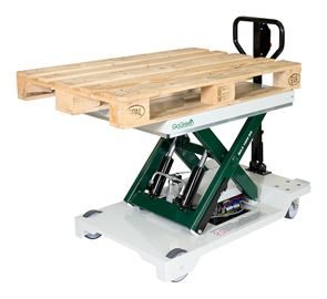 Kraftiga nylonhjul med polyuretanbana gör lyftvagnen lätt att köra. Lyftvagnen är självklart även utrustad med steglös sänkfunktion, död mans grepp, klämskydd, och överbelastningsskydd. Inbyggd laddare och underhållsfria inkapslade gel-batterier.
