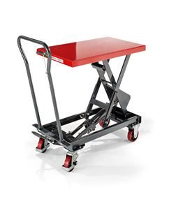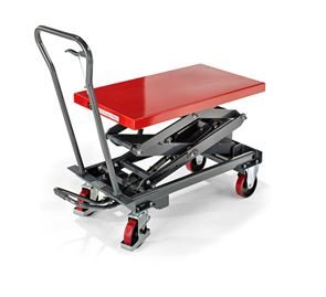 Lyftvagn Hera. Lyft med pumppedal och steglös nedsänkning med handreglage. Beprövat aggregat med lång livslängd. Servicevänlig med inspektionsöppningar. Pulverlackerat i basaltgrått RAL 7012 och signalrött RAL 3001.