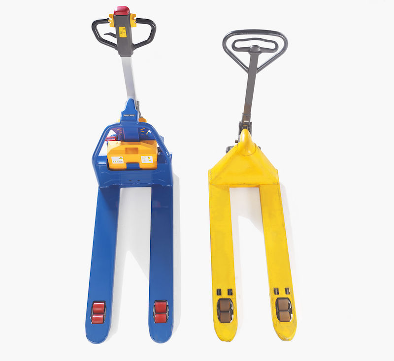 Elektrisk pallyftare Minea. Den elektriska lyftvagnen E15 är en vidareutveckling av den klassiska pallyftaren, med samma robusta konstruktion och flexibilitet, men modernare driv- och lyftteknik, vid motsvarande dimensioner.