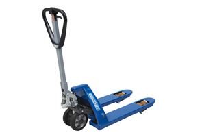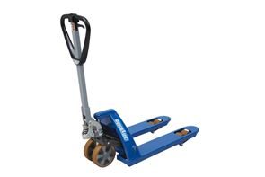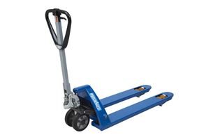 Pallyftare Lennon. Tillverkad i Europa av en tillverkare med mångårig erfarenhet. Pallyftaren eurokraft pro med QuickLift står för hög kvalitet och uthållighet. Den robusta konstruktionen ger hög tillförlitlighet i det dagliga arbetet. Reservdelstillgången är säkerställd på lång sikt och produkten omfattas av en 10-årig garanti. Pallyftaren har ett ergonomiskt handtag för enkel och bekväm manövrering. QuickLift-funktionen sparar värdefull tid och kraft vid lyft av lasten – pallen är fri från golvet efter bara två pumpningar och den maximala lyfthöjden på 195 mm uppnås snabbt efter fem pumpningar. Tack vare sin kvalitetskonstruktion med en vridstyv ram i rostfritt stål och en förstärkt gaffel är denna pallyftare mycket stabil med en lastkapacitet på 2300 kg. Hjulförsedda galffelspetsar underlättar hanteringen av europapallar.