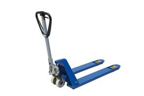Pallyftare Liana. Tillverkad i Europa av tillverkare med mångårig erfarenhet. Pallyftaren eurokraft pro står för hög kvalitet och uthållighet. Den mycket robusta konstruktionen och den underhållsfria kontakthydrauliken med överlastventil ger hög tillförlitlighet i det dagliga arbetet. Reservdelstillgången är säkerställd på lång sikt och produkten omfattas av en 10-årig garanti. Pallyftaren har ett ergonomiskt handtag för enkel och bekväm manövrering. Tack vare sin robusta konstruktion med en vridstyv ram i rostfritt stål och en förstärkt gaffel är denna pallyftare mycket stabil med en lastkapacitet på 2300 kg. Europapallar sänks ned steglöst och balanserat, och hjulförsedda gaffelspetsar underlättar hanteringen.