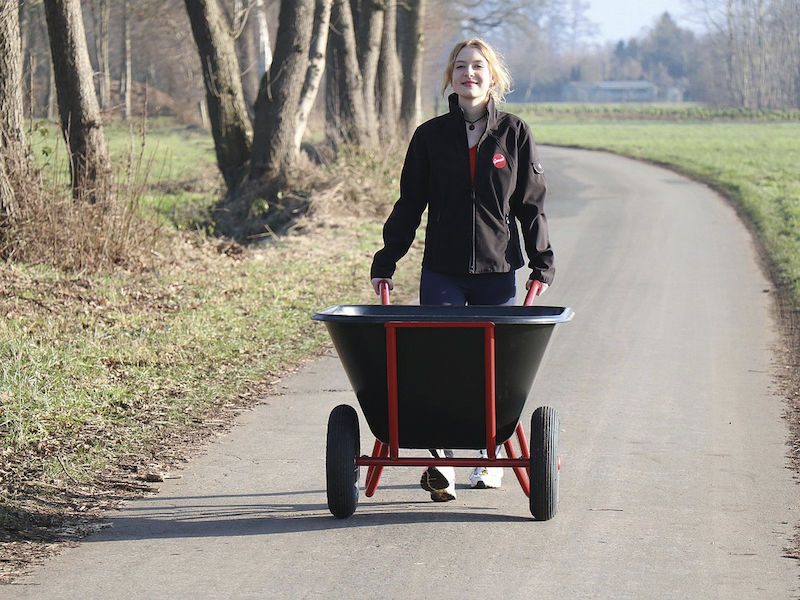 Det pulverlackerade underredet och luftgummihjulen (400/100 mm) säkerställer lång livslängd och underlättar transport av olika material.