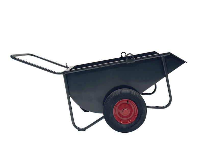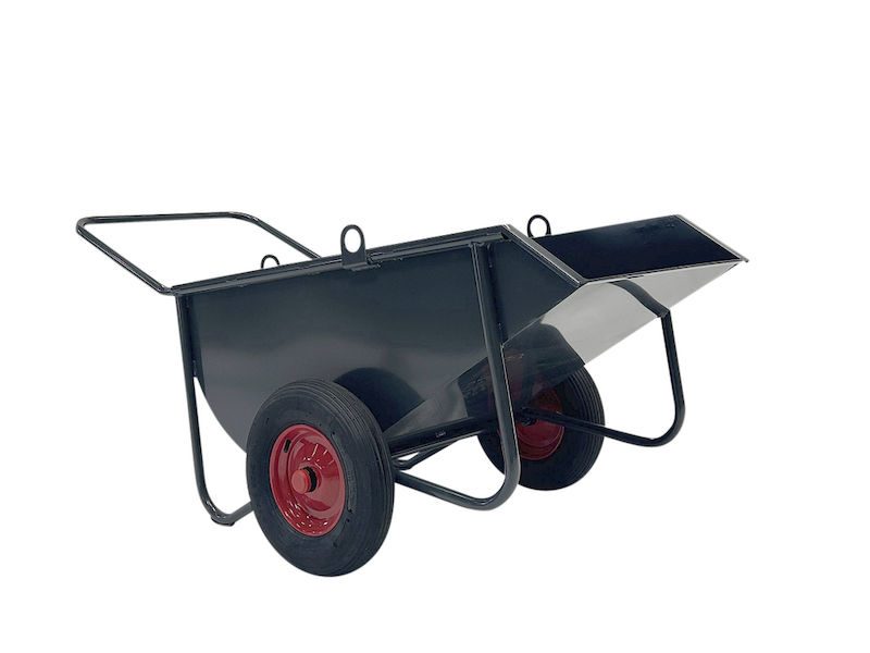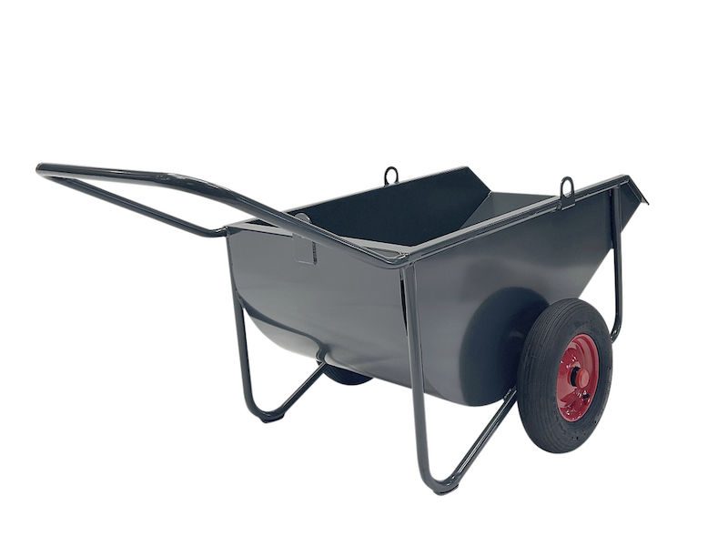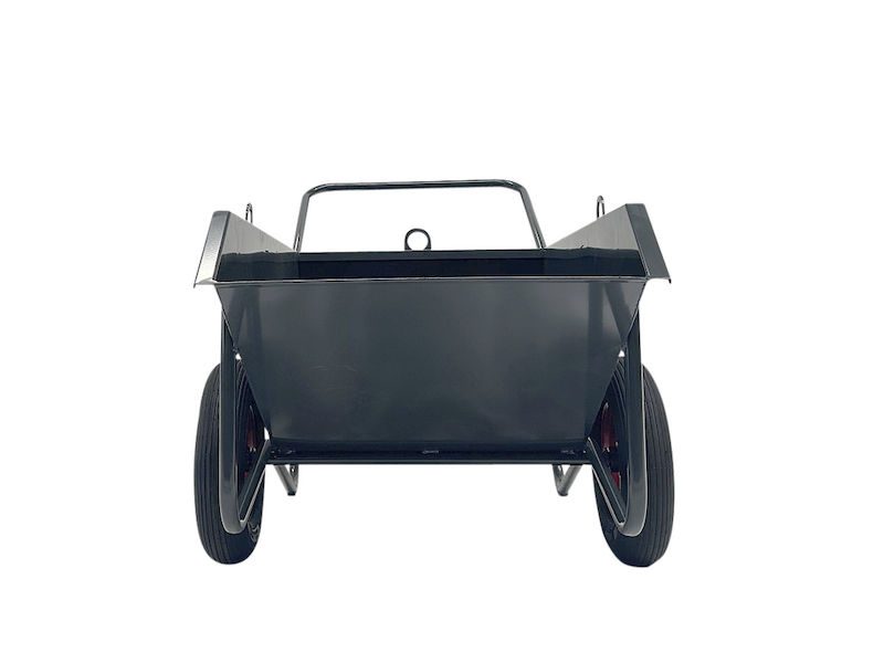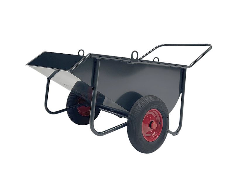 De främre medarna gör det möjligt att tömma lasset kontrollerat och enkelt utan att behöva lyfta tungt. Den stabila stålkonstruktionen är pulverlackerad för att stå emot väderpåverkan och slitage under lång tid. Luftgummihjul garanterar god köregenskap även på ojämna underlag och vid tung belastning. Utförandet i antracit ger en funktionell och slitstark helhet – perfekt för professionellt bruk.