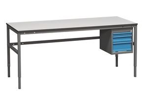 Arbetsbord Embla med 3-lådig hurts. Komplett arbetsbord med 3-lådig förvaringshurts, 435x385x500 mm. Mycket stabil konstruktion med kraftiga profilrör, 40x40 mm, i grå pulverlack.