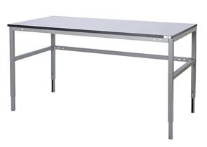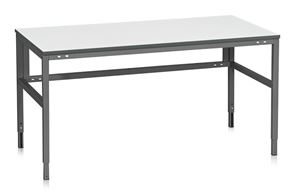 Stabilt arbetsbord som har 24 mm bordsskiva med grått ESD-laminat och bokkantlist. Steglöst inställbara ben av kraftigt profilrör, 40x40 mm. Gavlarna är helsvetsade och försedda med tvärstag.