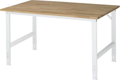 Arbetsbord Rickard, stativ 60 x 30 mm, skiva i massiv bok, BxD 1500 x 1000 mm, ljusgrå. Stabilt funktionsunderrede av stålrör med fotelement, tvärstag och förstärkningar. Miljömärkt pulverlackering.