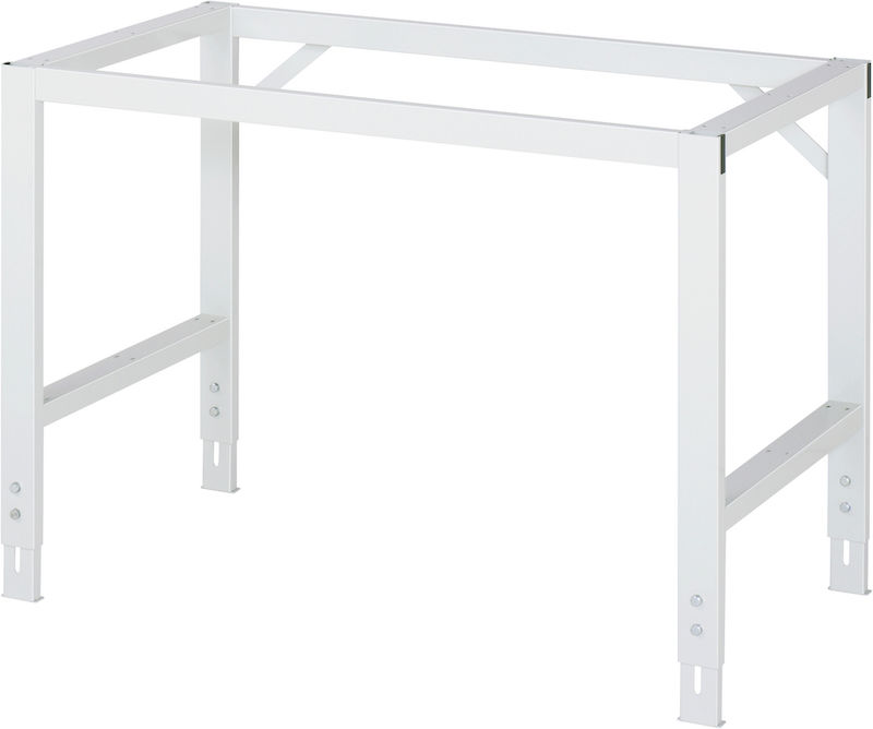 Arbetsbord Rickard, stativ 60 x 30 mm, skiva med rostfritt stål, BxD 1250 x 800 mm. Stabilt funktionsunderrede av stålrör med fotelement, tvärstag och förstärkningar. Miljömärkt pulverlackering.