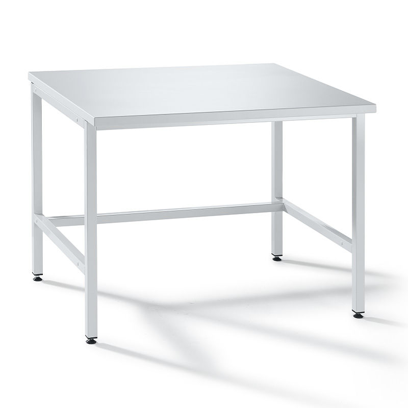 Laboratoriebord Huldra, BxDxH 1200x750x750 mm, ljusgrå. Ett stadigt och stabilt laboratoriebord med helsvetsat H-stativ som är enkelt att rengöra och tål många olika desinfektionsmedel. Laboratoriebordet har justerbara fötter om golvet skulle vara något ojämnt.