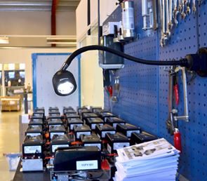 Arbetslampan har en 500 mm lång böjlig arm klädd med ett speciellt gummihölje (TPU) som skyddar från smuts, olja och fukt. Den här modellen har ett rörligt och anpassbart lamphuvud vilket gör att du har ännu större mångsidighet med ljusflödet.
