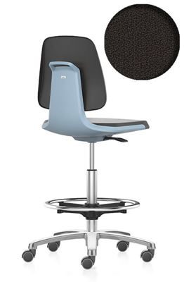 Arbetsstol Bimos Labsit, högstol med sittbromshjul och fotring, sits med tygklädsel, blå. PU-skum är extremt motståndskraftigt mot mekanisk belastning samt lätt att rengöra och desinfektionsmedelsbeständigt. Tygklädseln som andas ger hög sittkomfort. Den bekväma konstläderklädseln är lätt att rengöra och desinfektionsmedelsbeständig. Supertec®-klädseln har en noppig struktur och är extremt nötnings-, slitage- och rivtålig.