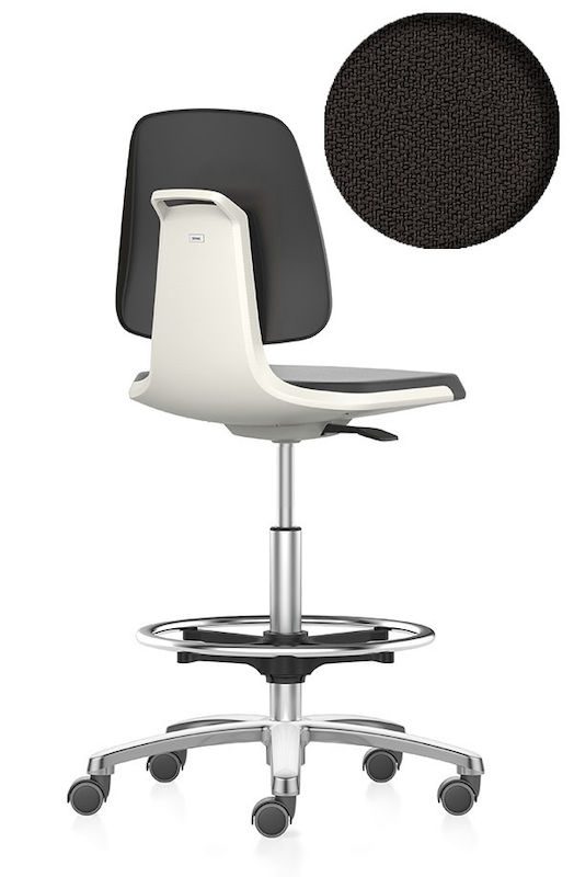 Arbetsstol Bimos Labsit, högstol med sittbromshjul och fotring, sits med tygklädsel, vit. PU-skum är extremt motståndskraftigt mot mekanisk belastning samt lätt att rengöra och desinfektionsmedelsbeständigt. Tygklädseln som andas ger hög sittkomfort. Den bekväma konstläderklädseln är lätt att rengöra och desinfektionsmedelsbeständig. Supertec®-klädseln har en noppig struktur och är extremt nötnings-, slitage- och rivtålig.